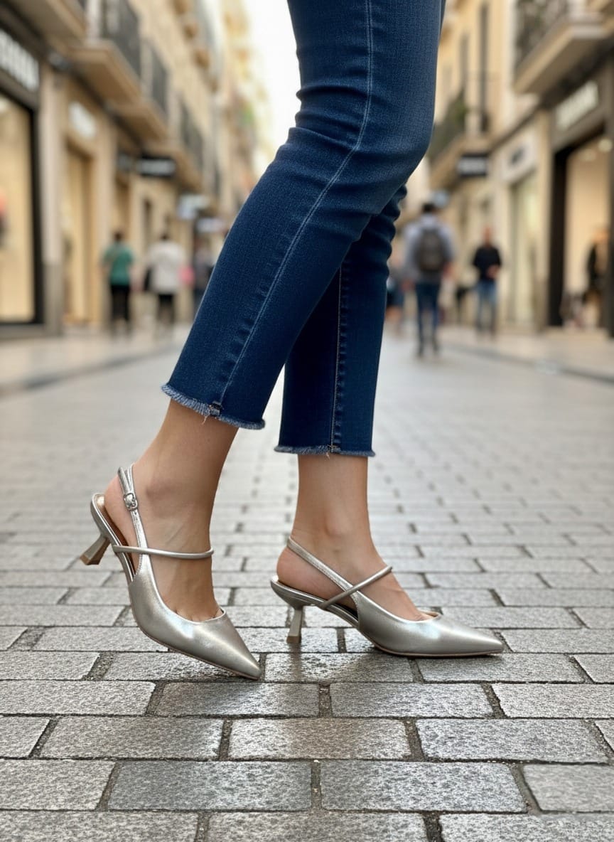 Su tacón tipo kitten heel (tacón bajo y fino) es el aliado ideal para quienes buscan elegancia sin renunciar al confort, permitiéndote disfrutar de cualquier evento de principio a fin.